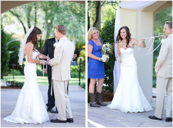 Amy and Bill’s outdoor wedding on the gorgeous grounds of the Marriott is full of rustic country touches paired with a crisp palette of white and bright blue and earthy neutrals. It’s also filled to the brim with gorgeous hand lettering, burlap details and personal touches like that little conductor’s hat Bill is holding (it was his father’s, who passed away), an actual “typing of the knot”, as well those incredible boots Amy and her bridal party are rocking.