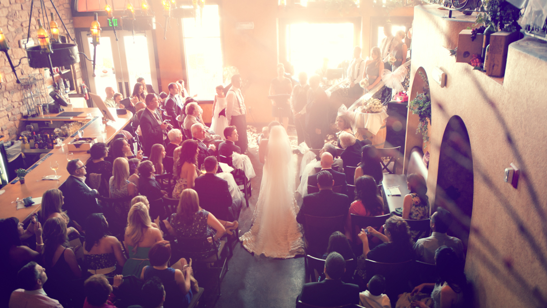 Sunset & Vines puts the emphasis on fine wine and dining and looks like a totally unique spot for a wedding. The European decor of the restaurant featured heavily in the Spanish inspired theme, with neutral colors combining with romantic lighting and stonework.