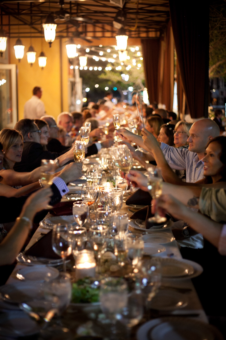 Cami tells it best: “I chose Sunset & Vines because we know the restaurant and staff very well. Through thick and thin when Lake Las Vegas was suffering we always gave our support to them. (The restaurant’s General Manager) Max Saleme runs the show over there and he is the best. I love the decor inside, and I just realized one day sitting there having some wine that we could do the whole shebang in there. I wanted a very intimate and heart felt ceremony, and I felt I would get just that from the venue. It was beautiful. We wanted to sit like a family. It definitely felt that way…it was magical. It was nighttime, the trees were all lit up…we ate everything family style…it really was like a dream.”Â
