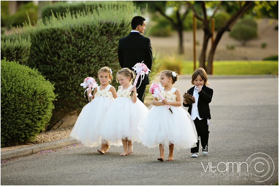 Carrying a tight, round all rose bouquet, accompanied by her mother and lead by her tiny team of flowergirls up a rose petal lined aisle, Crissy married Mike under a simple arch of chiffon and a chandelier, overlooking the Siena golf course greens. After the vows the family released Monarch butterflies together. Such a sweet way to signify the moment!