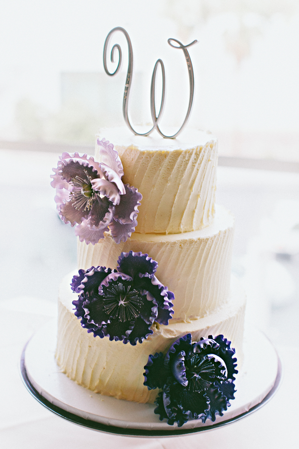 Freed’s bakery designed the three tier wedding cake with sugar flowers as well as the groom’s cake, which was a mason jar! Balloons floated overhead in the tray ceiling and purple uplighting added a glam touch to the already beautiful venue.