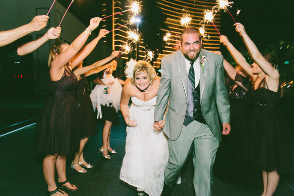 At the end of the night, the couple ducked under a tunnel of sparklers on an overpass over the Strip and headed off on their honeymoon!