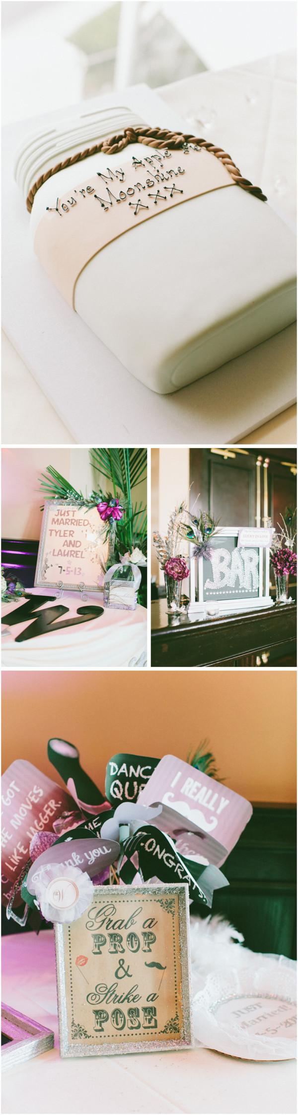 Laurel writes: “My mom and I planned the whole wedding ourselves. We were going for a Vintage/Glam feel. Maggiano’s was absolutely wonderful! The staff was so easy and accommodating and handled EVERYTHING. They were super helpful with vendor recommendations and all my questions along the way. Trying to get everyone where they need to be when they needed to be there was a task because everyone was scattered about the Strip but we used Bell Trans and got a shuttle bus to handle transportation for everyone to get to the ceremony.”