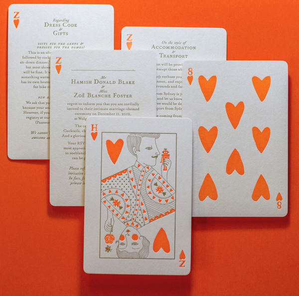 - Cool Vegas-style wedding stationery idea: neon letterpressed playing cards!