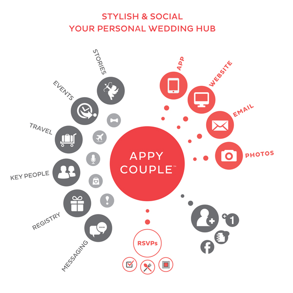 Nowadays, couples getting married have so many things to keep track of. Personalized wedsites, multiple wedding registries across various sites, email RSVPs, personal hashtags and multiple social streams where their wedding can be captured, from Instagram to Facebook, Vine to Flickr. It sets my head spinning. How to keep track of it all? Enter Appy Couple!