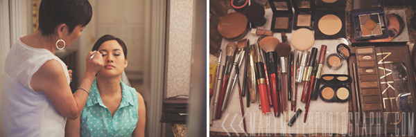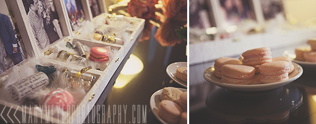 Helena works in the shoe industry, so you know she had to have some gorgeous footwear for her wedding, and her Badgley Mischka heels did not disappoint and were a nice complement to the Art Deco styling of her Vera Wang gown (with similar tailoring seen in her bridesmaids dresses.) While getting ready the bridal party nibbled on delicate macarons.