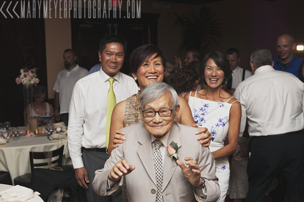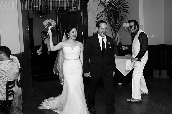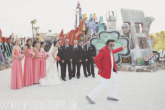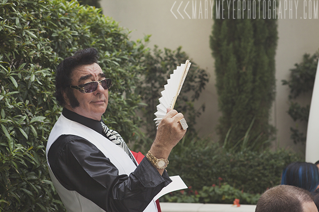 From Mary, the photographer: “I haven’t been to such a lively and fun reception in a long time.  I have to give a shout out to Helena’s grandfather who had just celebrated his 90th birthday for busting out some serious dance moves on the dance floor!  You will see below. And I also can’t forget their shoe designer friend Dennis who actually IS Elvis. It’s not a Vegas wedding without Elvis… or at least someone who looks like him!”