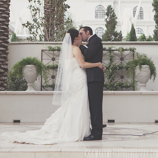 Helena and Hondo are a couple who came from New Jersey to do their wedding Vegas style! This destination wedding took place in the serene Juno Garden at Caesar’s Palace, with photography by the always fabulous Mary Meyer.