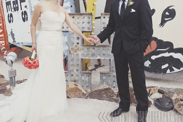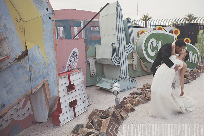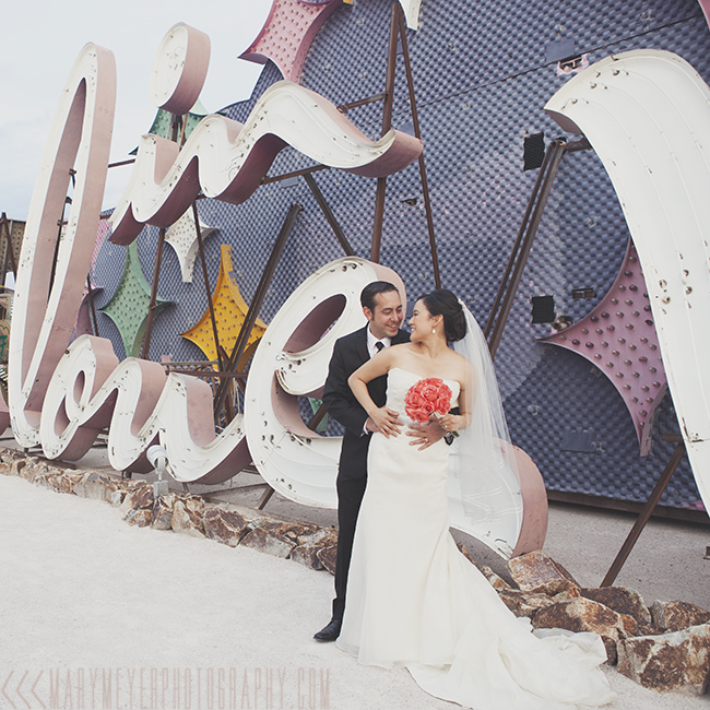 Photographer: Mary Meyer Photography / Wedding Venue: Caesar’s Palace Juno Garden / Reception Venue: Maggiano’s / Wedding Portrait Venue: The Neon Museum / Wedding Dress: Vera Wang “Harper” / Qipao Dress: Pearl River Mart / Hair: Color Salon by Michael Boychuk / Bride’s Shoes: Badgley Mischka “Cherise” / Bridesmaid’s Dresses:  Bari Jay “916” / Groom’s Suit + Menswear:  Black by Vera Wang by Men’s Wearhouse /  Floral: The Palette / Cake: Retro Bakery / Macarons: Sugar Bee’s Bakery / Entertainment + Lighting: Sight & Sound / Videography: Light Source Films