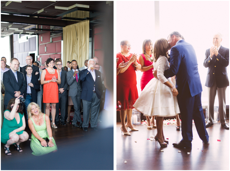 Circled by about 100 friends, family and loved ones who stood during the ceremony presided over by Stephanie Rawlings-Blake, mayor of Baltimore, the couple exchanged vows then shared a sweet first dance. Following the post-ceremony celebration in the converted bar space, the guests embarked on a Vegas style reception: visits to some of the Strip’s finest clubs and lounges.