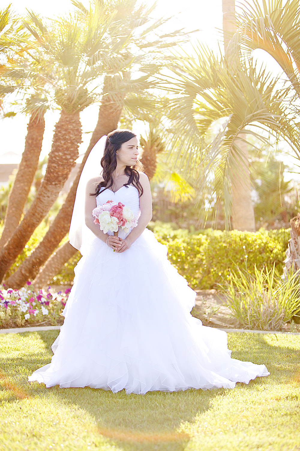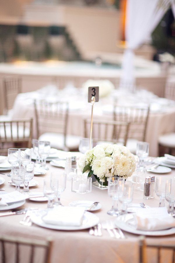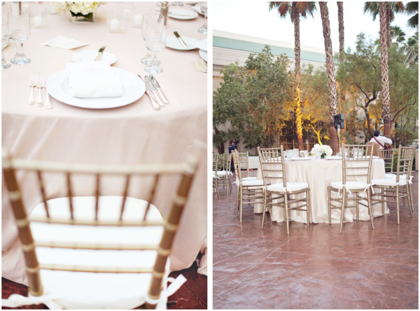 Let today’s destination wedding take you away! Courtney and Stephen came from Canada to be married at the chic Four Seasons Las Vegas in a very modern outdoor ceremony and reception. An airy palette of pink, white and gold gave the day a romantic, vintage feel.