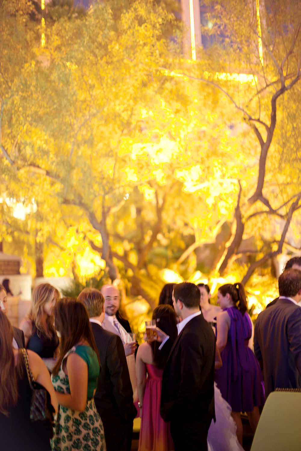 During the reception, they had a photobooth set up next to the open bar. Next to that was a real Cuban cigar station where cigars were hand-rolled! All surrounded by a candy bar that lead to a gorgeous view of the Las Vegas sky. The night ended with loads of dancing and everyone jumping in the fountain to celebrate.