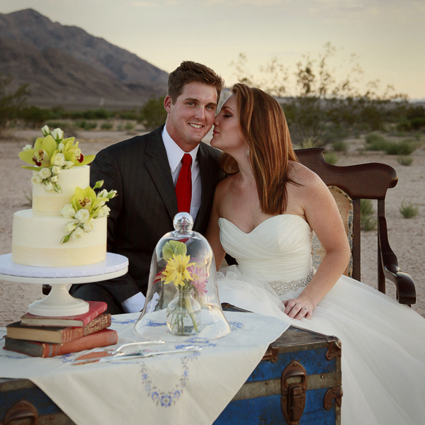 Photographer:  Denise Burridge Photography / Wedding Venue: Sunrise Mountain / Event Concept and Design: Denise Burridge / Makeup: Makeup by Shandell / Cake: Freed’s Bakery / Rentals and Vintage Props: Nostalgia Resources