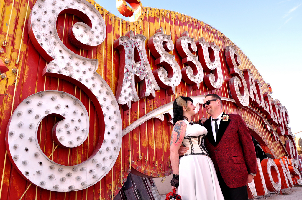 You’re going to love today’s very timely Day of the Dead Vegas wedding – it’s anything but ordinary! It ticks so many fun, quirky boxes: rockabilly, DÃa de los Muertos, Elvis, pinup, DIY style, 1950s retro theme…and that’s just for starters. But, that’s what you get when two creative types get married!