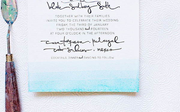 Ocean ombre wedding invitations by Suite Paperie [source]