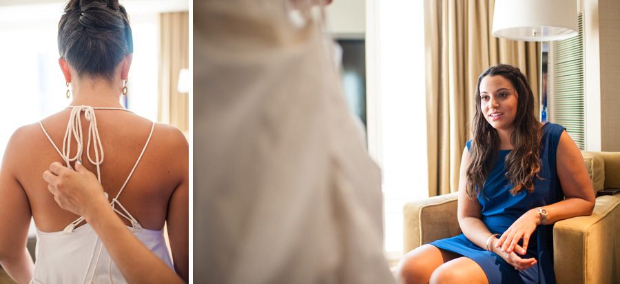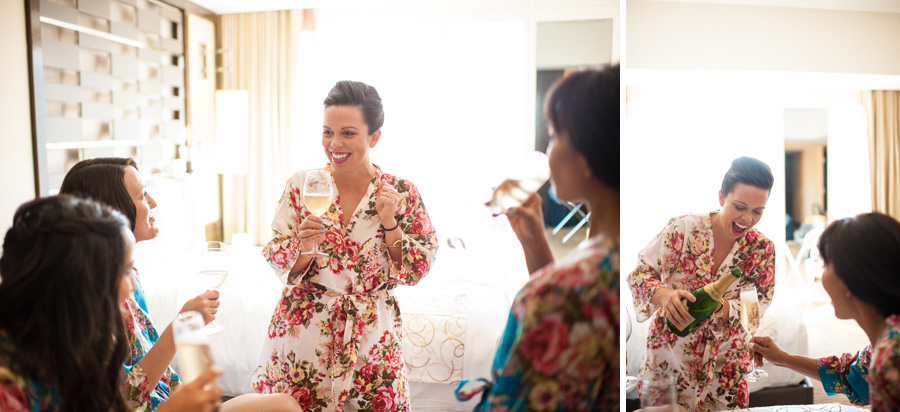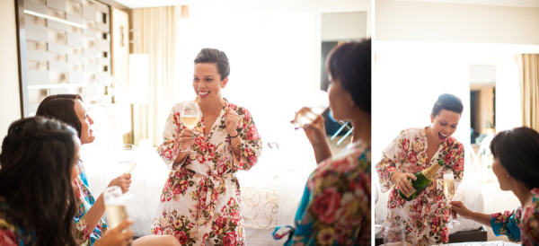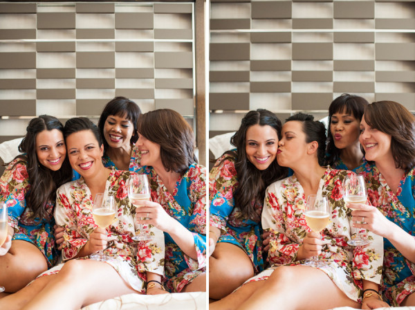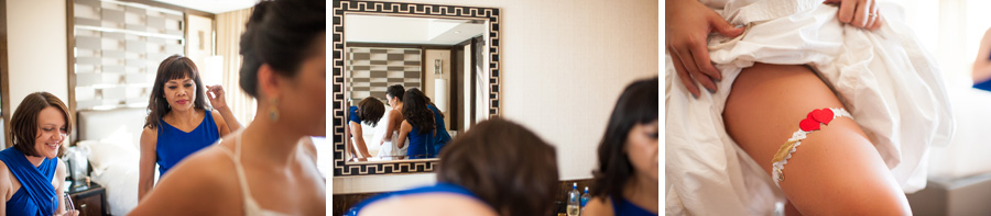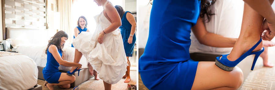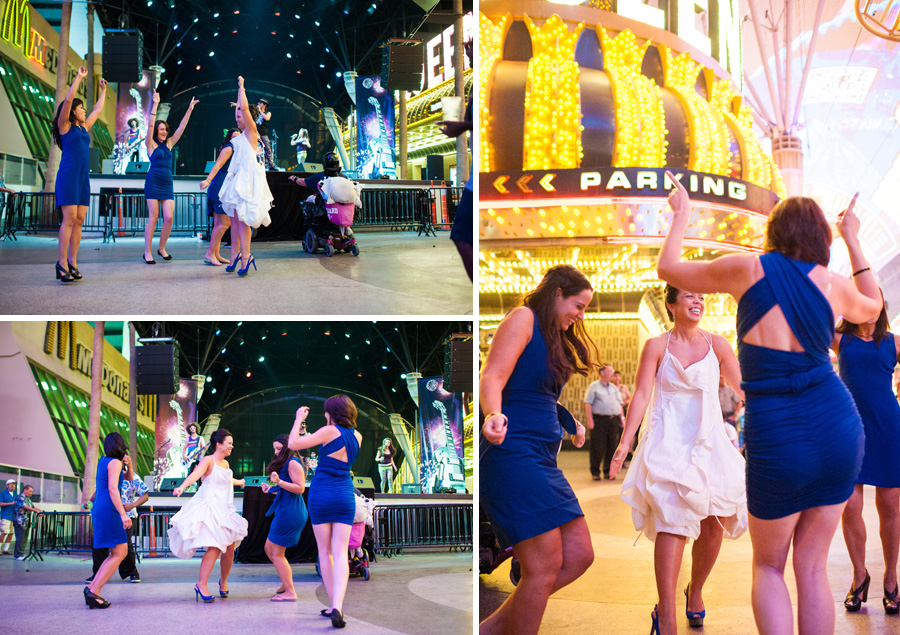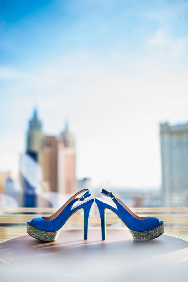 The color of the day was blue, as worn by the bridesmaids, Tiffany’s manicure and even their officiant. I wonder if he wore blue suede shoes, too..? Tiffany’s ultra modern, funky trapeze style dress came from AllSaints – there is a location in Cosmopolitan! (I’m always lusting after the leather there…)