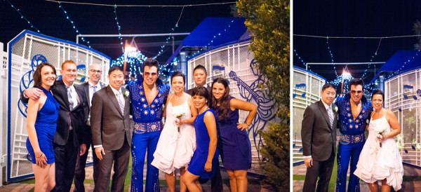 Photographer: Isaac Wu Photography / Wedding Venue: Graceland Wedding Chapel / Wedding Dress: AllSaints Spitalfields ‘White Parchute Dress’ / Hair + Makeup: The Spa at Mandarin Oriental / Bride’s Shoes: Vince Camuto / Groom’s Suit + Menswear: Thick As Thieves / Groom’s Shoes: Johnston & Murphy / Cake: Freed’s Bakery