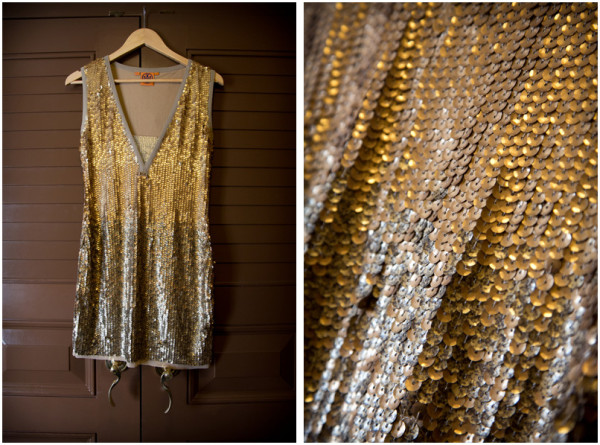 Kristin and Corey held their modern wedding ceremony and reception at the retro museum recently, and threw in an Elvis officiant for good measure. I love the modern mix of Kristin’s glitzy gold sequined kate spade dress and stylish low decor of the reception surrounded by the glowy neon lights.