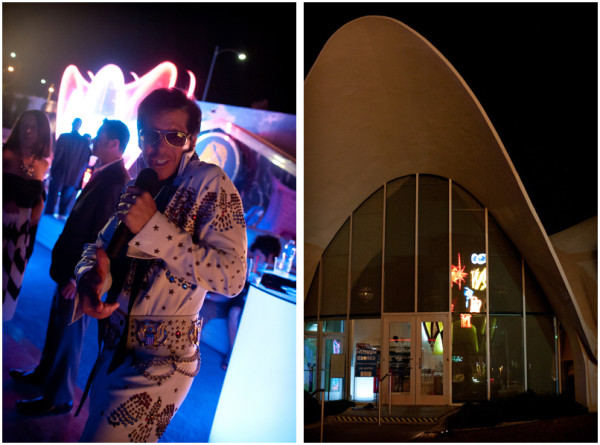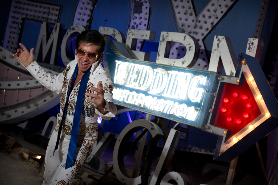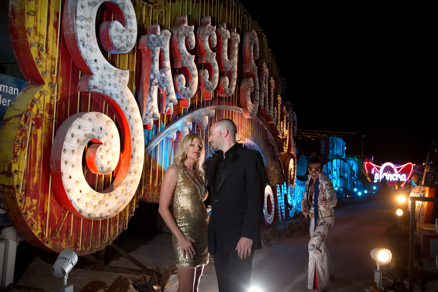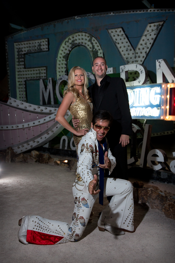 Photographer: Brilliant Imagery / Wedding + Reception Venue: Neon Museum / Wedding Co-ordinator: Kenzi Blalock, Sight and Sound Events / Wedding Dress: Tory Burch “Panzi” / Hair + Makeup:  Amelia C & Co / Bride’s Shoes: kate spade “Rosie” / Groom’s Suit + Menswear: Hugo Boss / Catering: Renaissance Catering / Elvis + Celebrant: Roland August, The Mobile Minister / Lighting + Furniture: LED Unplugged / Transport: Resolute Limo / Welcome Dinner: Chocolate Lounge at Sugar Factory at Paris Las Vegas
