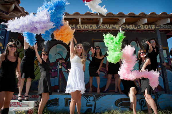 Read on for more from Kristin on planning a wedding at the Neon Museum and for lots of photos from Brilliant Imagery of the wedding, plus the welcome dinner at the Sugar Factory and the trash the dress shoot in the arts district of Vegas with all the girls post-wedding!