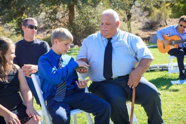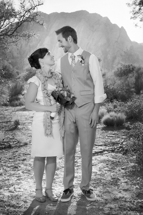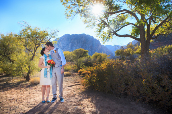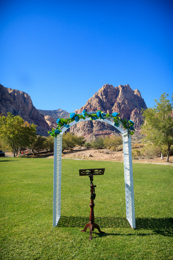 Photographer: Taylored Photo Memories / Wedding Venue: Spring Mountain State Ranch Park / Reception Venue: Tommy Bahama / Wedding Dress: Alfred Angelo / Hair Stylist: Sonya Johnson at Sola Salon / Jewelry: Charming Charlie / Bride’s Shoes: Zappos / Groom’s Suit + Menswear: Perry Ellis /  Floral: Desert Rose Florist / Celebrant: Angie Kelly of Peachy Keen Unions / Ceremony Music: Kasey Carmody, Guitarist / Rentals (arch and chairs): Rebel Party Rentals