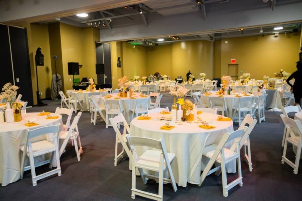 - On top of the space, also included are: standard house lighting, 5′ round banquet tables  and standard ceremony chairs as available