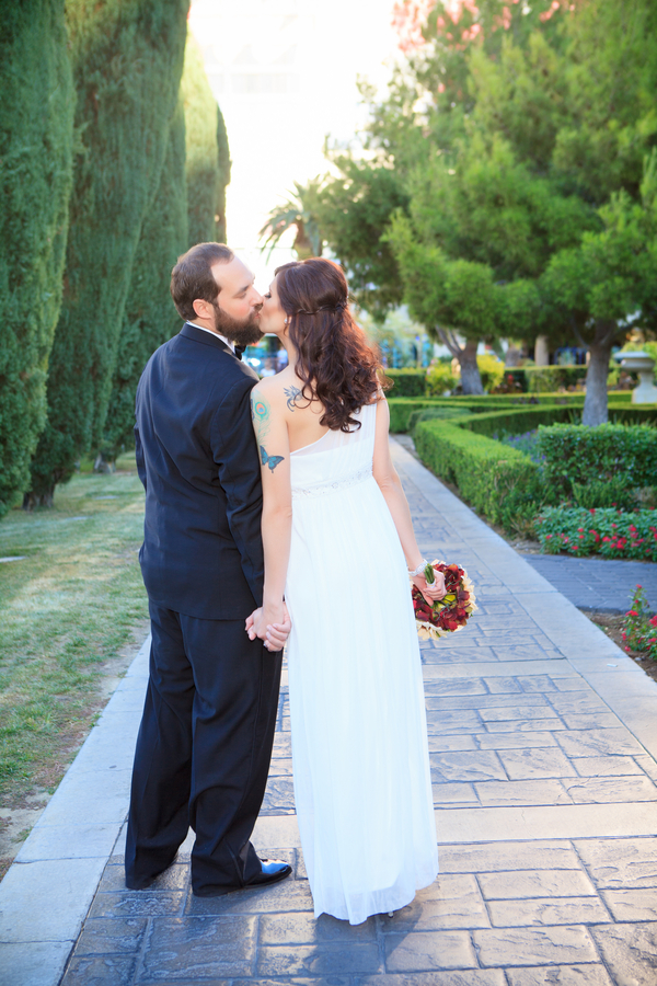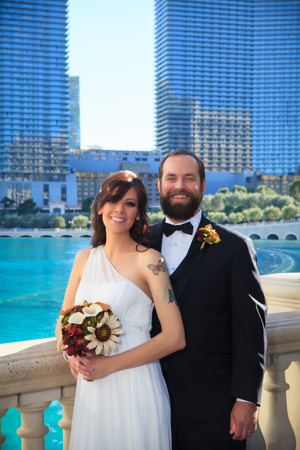 Pete and Katie are a couple of nurses from Minnesota who escaped to Las Vegas for a completely charming elopement at Chapel of the Flowers. While they were there, they had a post-wedding shoot with Taylored Wedding Photos, doing a mini-Strip photo tour in and around Bellagio. Katie is the very definition of a glowing bride, isn’t she?