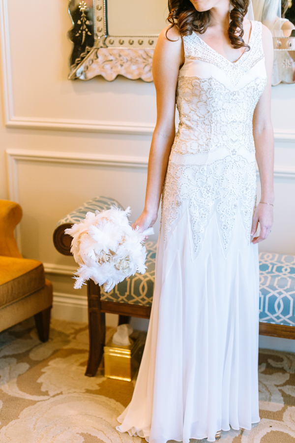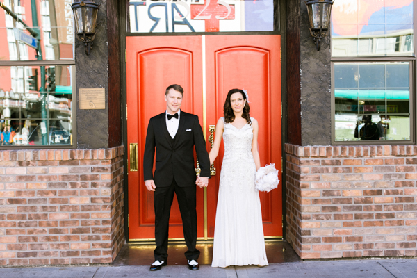 Based on F. Scott Fitzgerald’s “The Great Gatsby”, the thoughtful details Sarah and Scott included in their intimate wedding are astounding, including Sarah’s vintage-inspired Sue Wong gown, a choreographed dance routine and an amazing art deco cake. Even the venues were thoughtfully chosen with the theme in mind. The vintage dining style of The Barrymore and The Laundry Room, a private speakeasy bar inside Commonwealth, kept the Gatsby-esque wedding going well into the night.