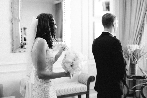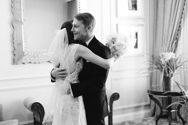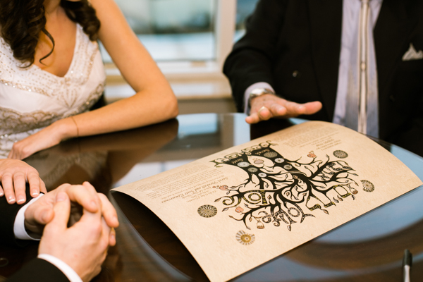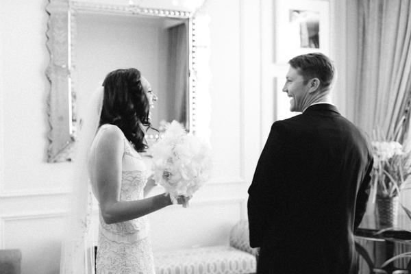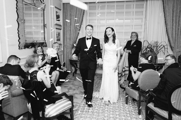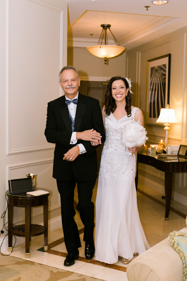 We had a Jewish ceremony and two of our friends read poems “I carry your heart with me” by E.E. Cummings and “Touched by an Angel” by Maya Angelou. Our cousin Michael played “Canon in D” on the guitar while I walked down the aisle. Afterwards we toasted with champagne! Very Gatsby. It was a beautiful and meaningful ceremony. Having it in our hotel suite made the space feel very sacred because it was also our room for our wedding night.