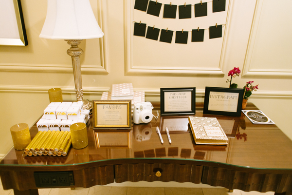 Photographer: Gaby J Photography / Ceremony Venue: Venetian, Prima Suite / Reception Venue: The Barrymore / Cocktail Party: The Laundry Room, inside Commonwealth / Wedding Dress: Sue Wong / Hair + Makeup: Makeup in the 702 / Bride’s Shoes: Antonio Melani / Groom’s Suit + Menswear: Vera Wang for Men’s Wearhouse / Cake: The Barrymore / Celebrant: Rabbi Mel Hecht / Dance Choreographer: Gigi Burton / Bouquet: LaPlumeEthere / Ketubah: Doodlage / Wedding Favors: Copies of “The Great Gatsby” by Penguin House / Ornaments: Mama Made Them