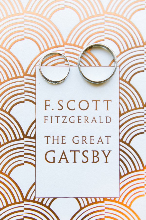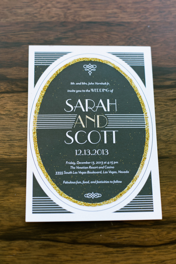 We felt a Vegas wedding was the perfect excuse for a theme. I am a librarian and Scott and I always felt very fascinated by the roaring 20s and art deco design. “The Great Gatsby” is a book on decadence and lavishness, not the most romantic book actually, but one of our favorite novels. Plus, if there is one time to be lavish, isn’t it your wedding? We felt like celebrating literature and our love, plus everyone looks so great in 1920s clothes!! Scott really wanted all the men in bow-ties.