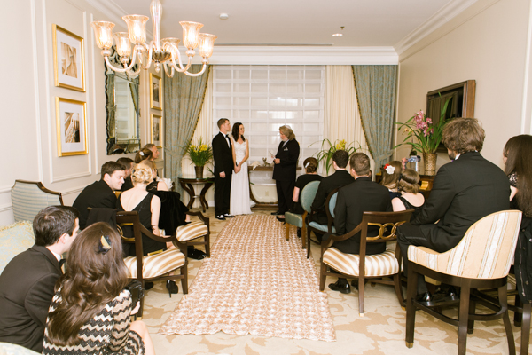 The room had enough seating for all of our 16 guests! We didn’t need to rent or borrow anything. Even the altar was a console table in the room. It all turned out perfectly. I made the aisle runner so it would look more like a wedding than a hotel suite.
