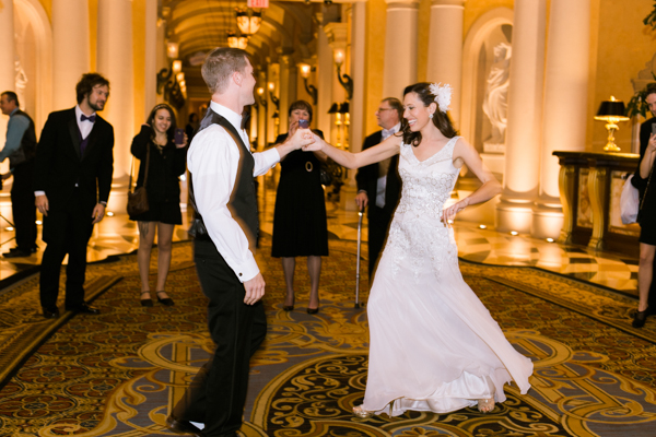 Our wedding dance! We went to secret private dance lessons (with choreographer Gigi Burton) and did a two song routine with rumba, swing, and the lindy hop. We found the perfect spot in the Venetian and just busted it out. Only a few people knew and we just blew everyone away. It was such an amazing feeling and a relief when it was over – we were so worried we would mess up and fall because we were in our wedding clothes for the first time!