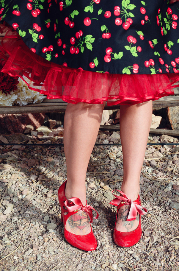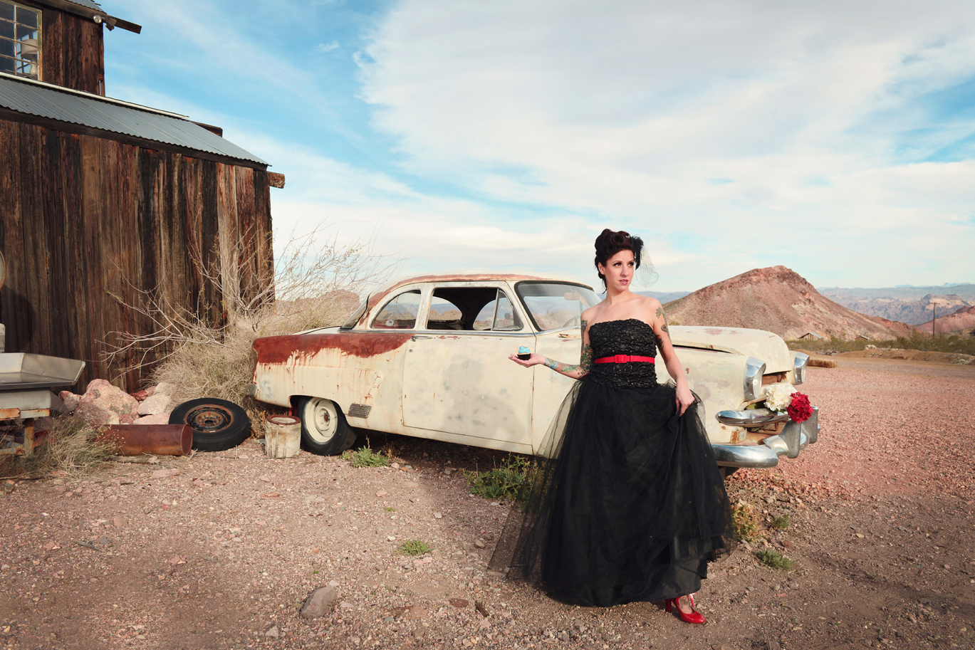Shot on Location at Eldorado Canyon by Davista Photography / Model: Shoshanna / Hair and Makeup: Makeup by Missy / Black Cherry Dress: Pinup Girl Clothing, “Heidi” / Black Tulle Dress: Tally’s Boutique / Cupcakes: Gimme Some Sugar