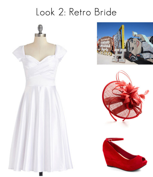 All dresses for the four looks are through Rent the Runway (now with a convenient location in Cosmopolitan!) or ModCloth, so they are all under $300. Budget Vegas weddings with style…that’s how we do here at Little Vegas Wedding!
