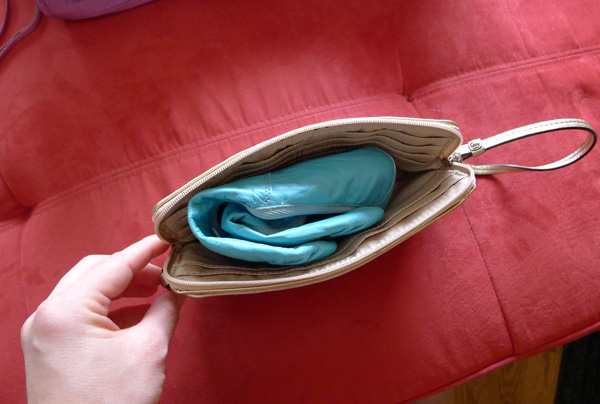 They have a super thin profile which makes them very easy to slip into the tiniest of bags. I used my wallet-sized wristlet as an example for how small of a space these shoes fit in in the photos. Of course, they also fit in my much larger purses, as well. The thin profile doesn’t afford them much arch support, so if you have trouble with really flat shoes, these may not be the solution for you.