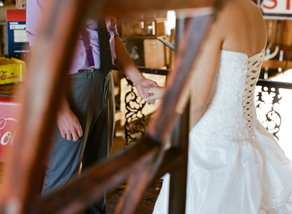 I came across Eldorado Canyon while doing online research and we loved the variety of the location mixed with the shabby chic theme. I then continued the theme throughout the rest of our day. I used my step-mothers wedding dress that she married my dad just months before and incorporated a birdcage veil and burlap headpiece to bring a more vintage feel to my attire.
