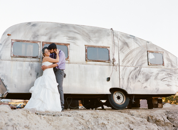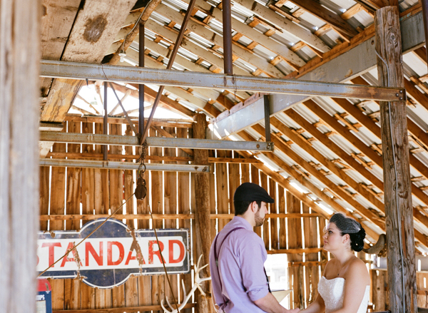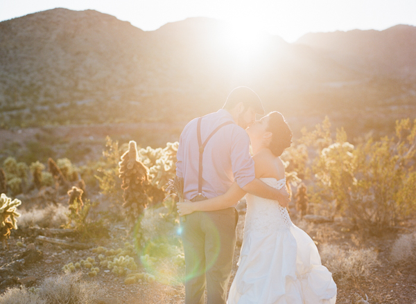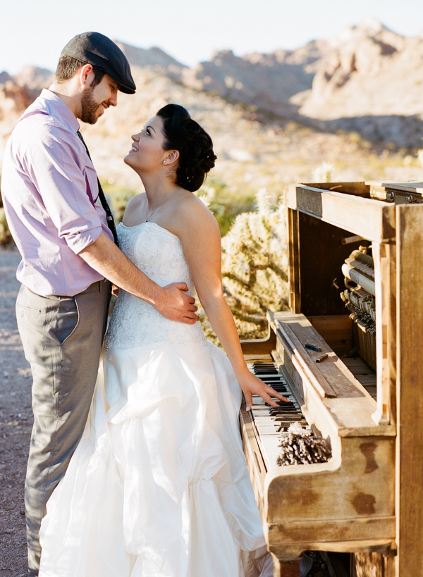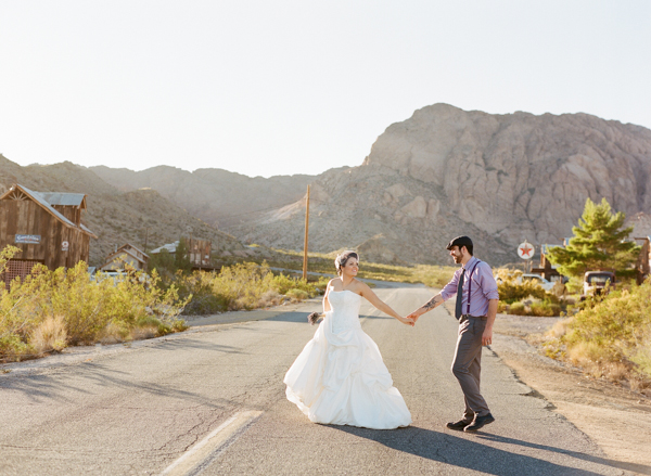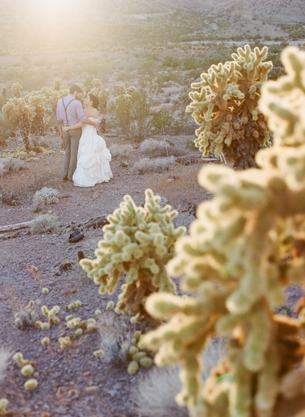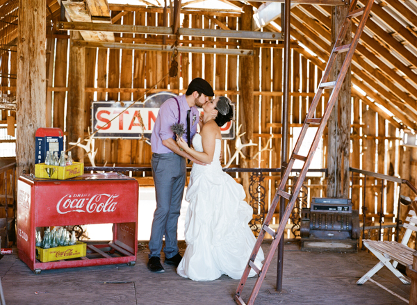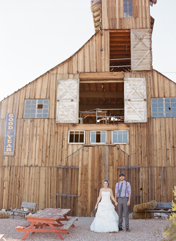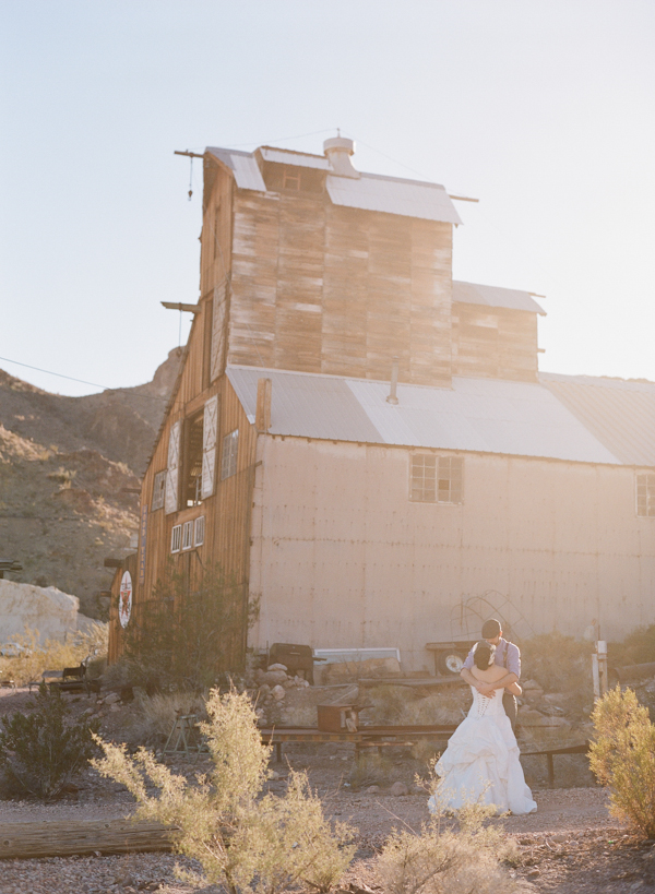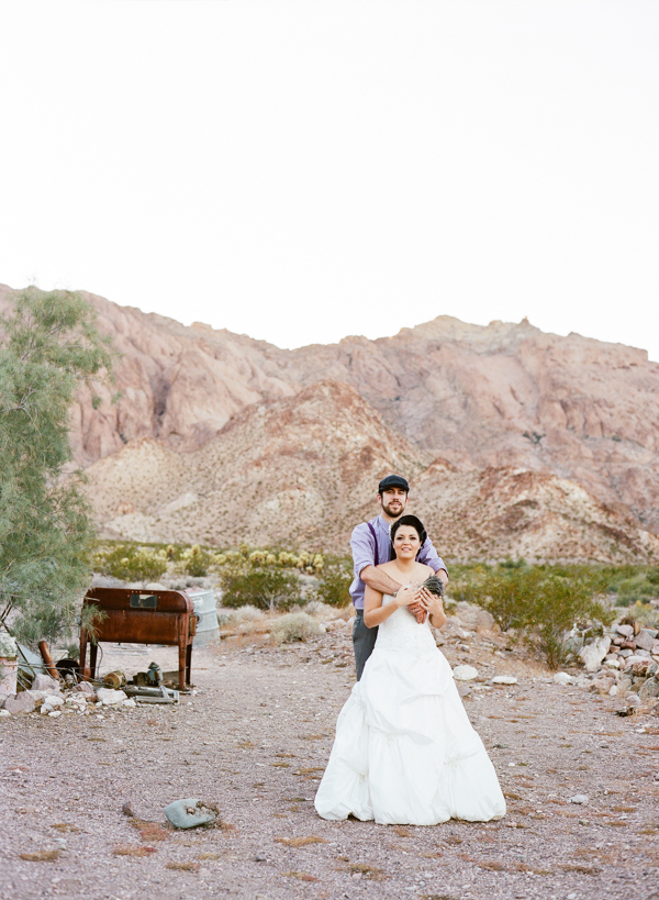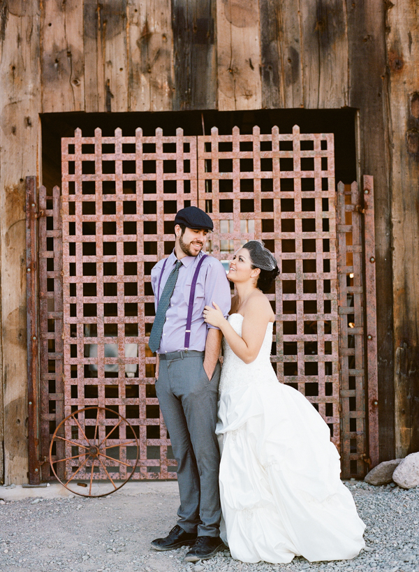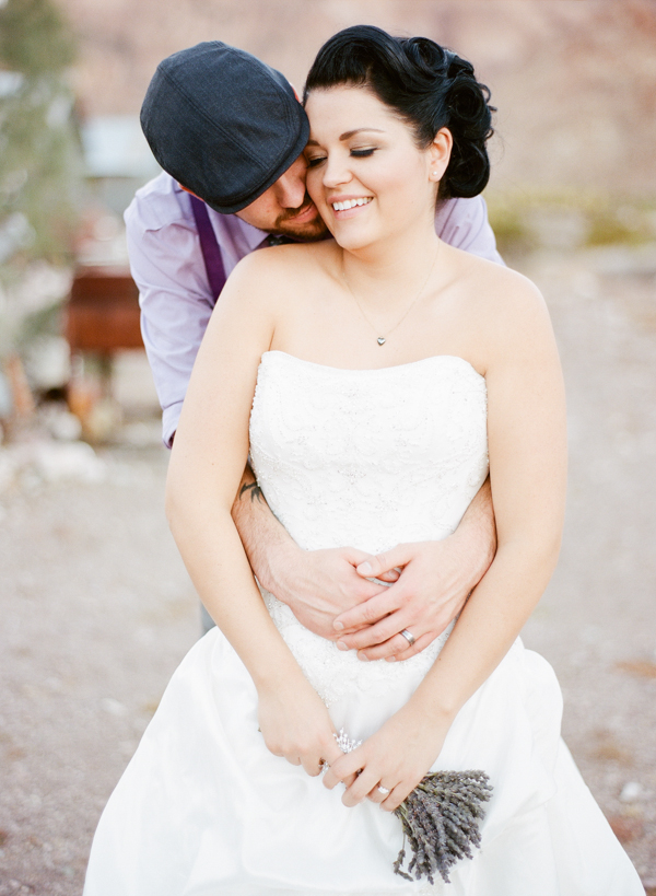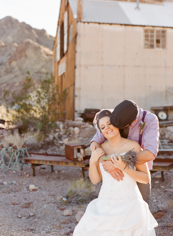 Escaping from the deepest, darkest parts of winter, they landed in Las Vegas for their intimate wedding at Eldorado Canyon. Their elopement was very rustic, surrounded by desert landscaping and the vintage charm of the ghost town there. Touches of soft gray and purple pulled it all together along with some lovely light captured by Gaby J Photography. Pretty far removed from the snowy tundra, eh?