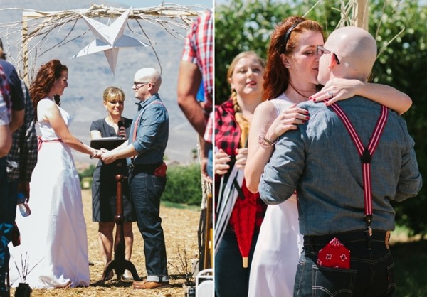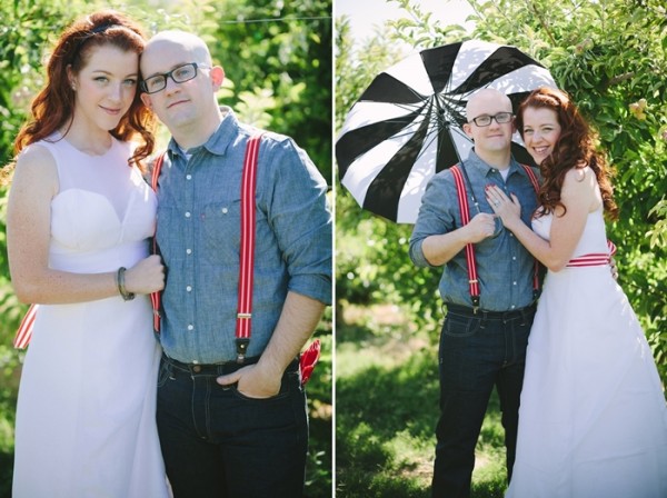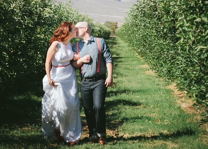Be wowed again and again by the bright pops of apple red, the gorgeous setting and the emotional moments at this rustic orchard wedding! Almost every detail of their wedding was handmade by themselves or by loved ones. As Laren, the bride, wrote: “It’s like that saying, it takes a village to raise a child, well it took a village to plan this wedding. We had so much help from our friends and family. People came out to help set up, cook, clean, prep, and design. I have the best friends and family.” If you want to see more of Laren’s creativity, be sure to check out her blog, The Little Lion Girl!