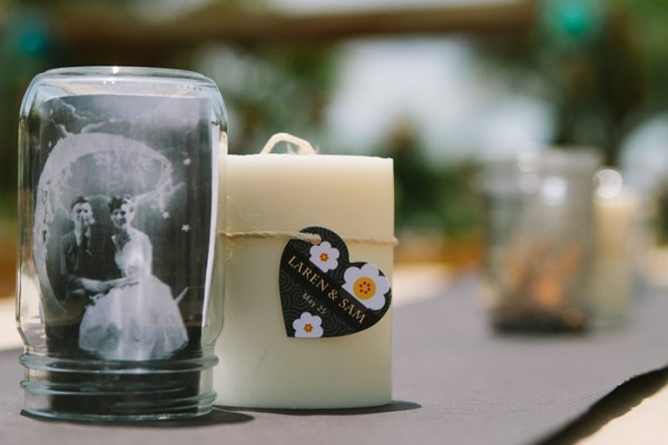 My husband and I built the wedding arch and wrapped it with twigs from a tree that had fallen down in a storm in my in-laws backyard. We also built the keg stand/bar with the help of my father-in-law. All of the candles and soy melt favors came from my dad and stepmom’s candle company, Collective Scents.