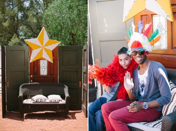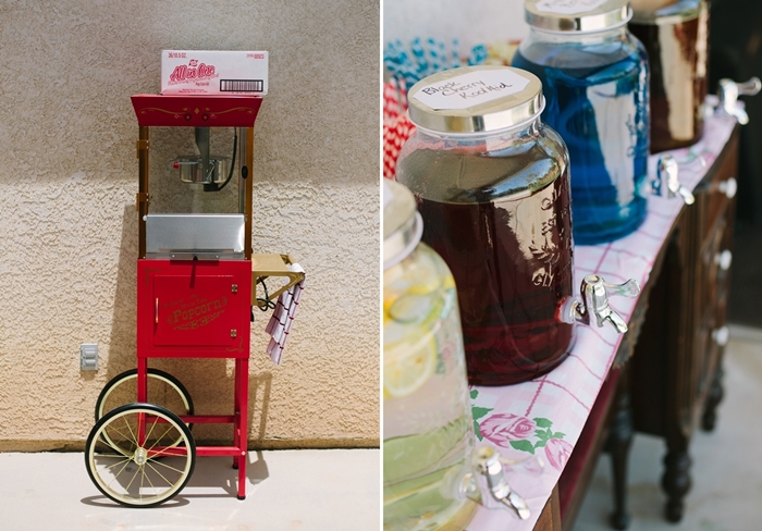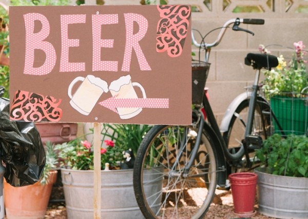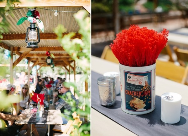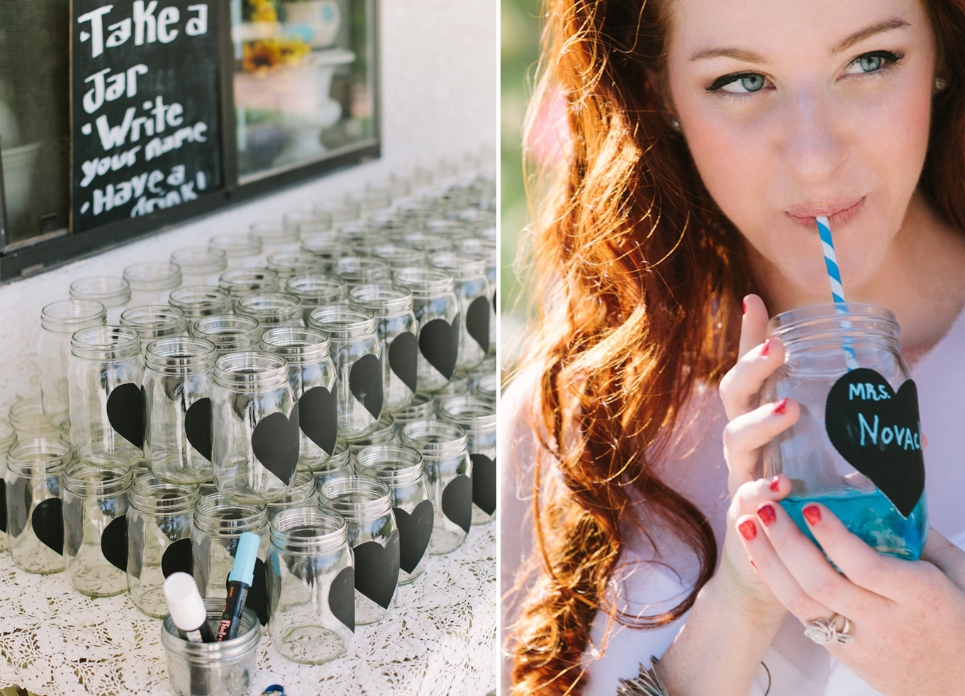 The drinking jars were all ordered online and covered with chalkboard heart stickers that I cut out myself and the plates were all old pie tins that we collected over a year and a half with the help of friends. My in-laws built the photo booth area with the vintage doors and supplied all the dress-up items for the photos from their antique booth at Charleston Antique Mall. When our guests showed up they took photos with an Instamax and that turned into our guestbook. The day was such a success and my friends and family still talk about how much fun it was. I’ve even had requests for a repeat night!