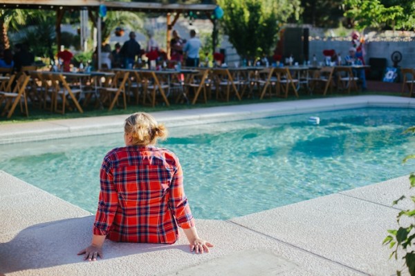 I have so many amazing memories that its hard to pick just one. My 3-year-old niece who was my flower girl calling me a princess. Our groomsman Joe pulling out a unicorn mask and taking shots through it. One of my best friends surprising us with a floating candle ceremony where we lit candles for each other and the people we love and placed them in the pool. Being surprised with our cake. The funny butt picture of all the guys.