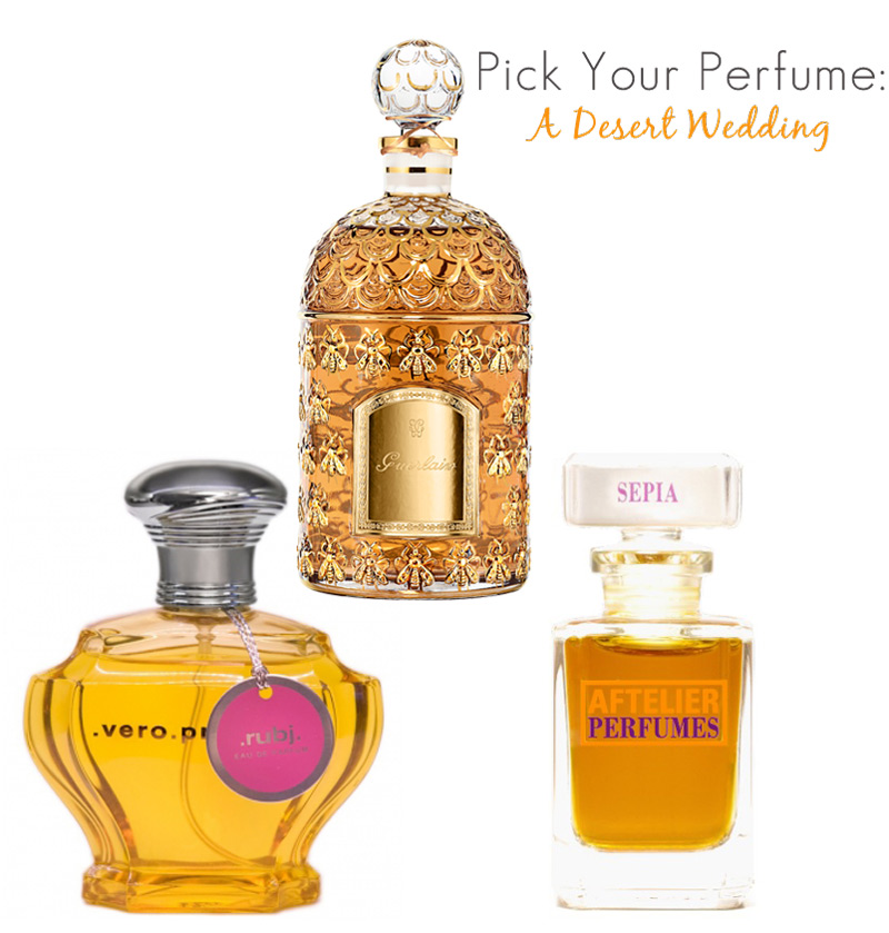 I believe a fragrance should not only suit the person who wears it, but should complement with the mood of the day. After all, you wouldn’t dab on the same scent to attend the Indy 500 as you would for a Chanel runway show, right? With that in mind, I’ll be sharing three wedding scenarios, each with three perfume possibilities over the next three weeks. Today’s suggestions are for a desert wedding.Â
