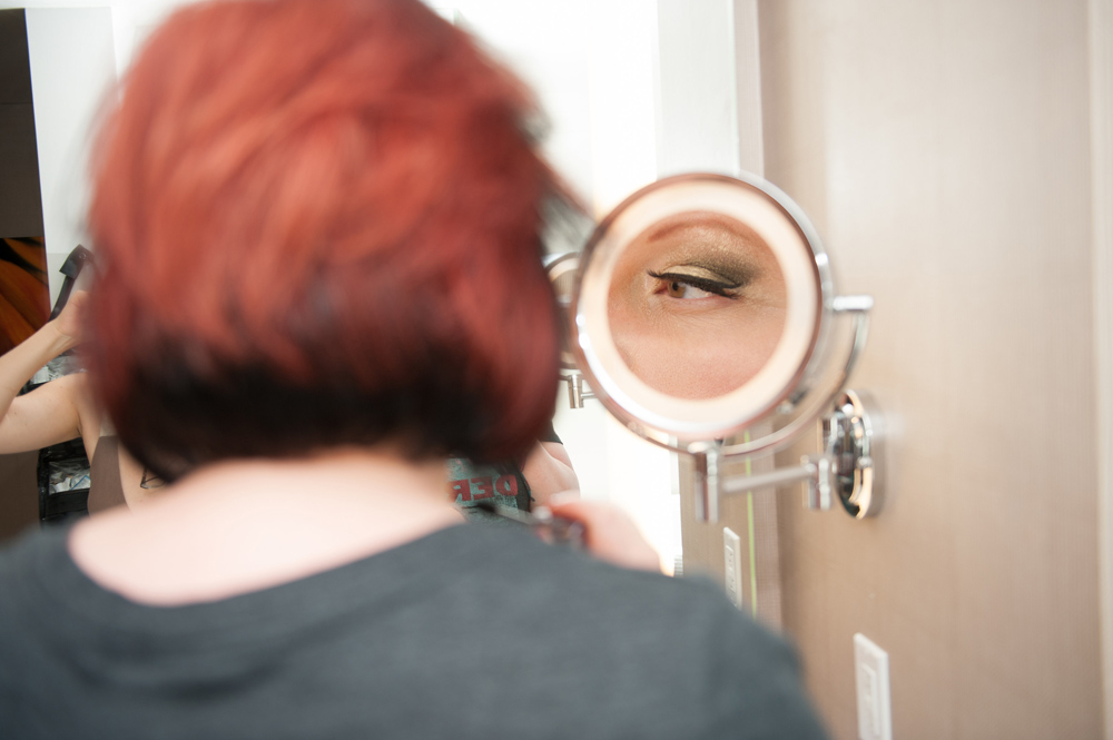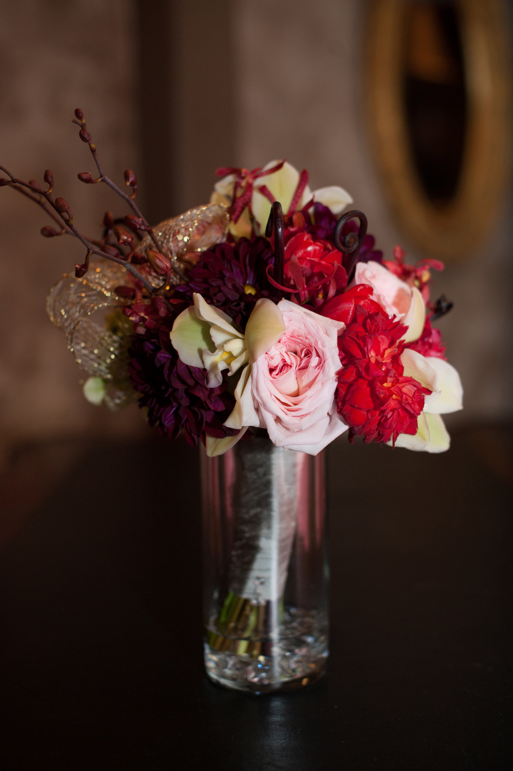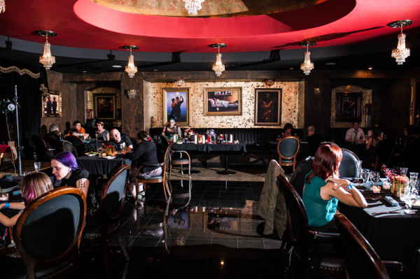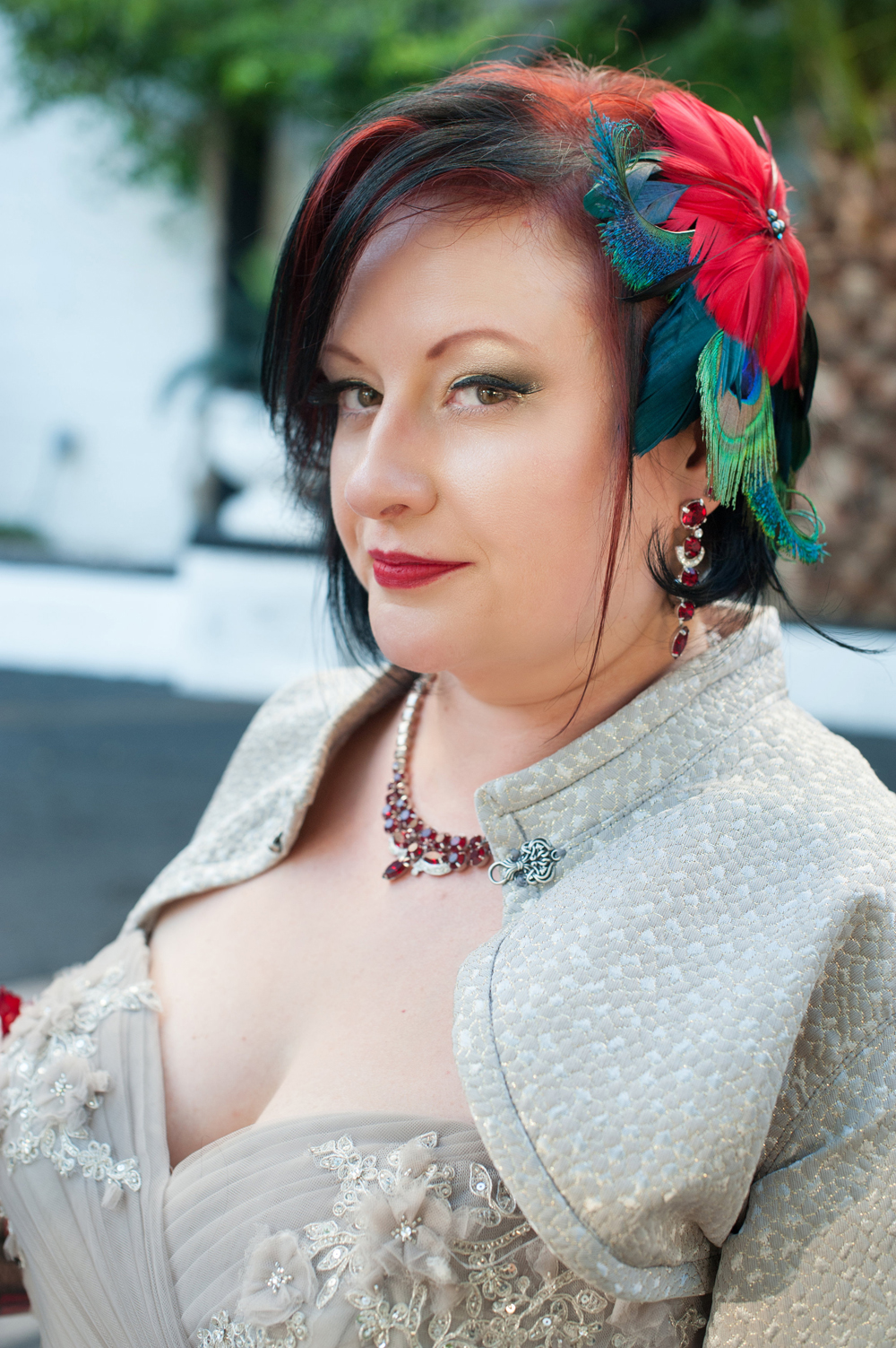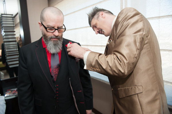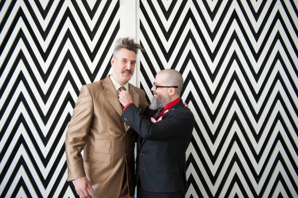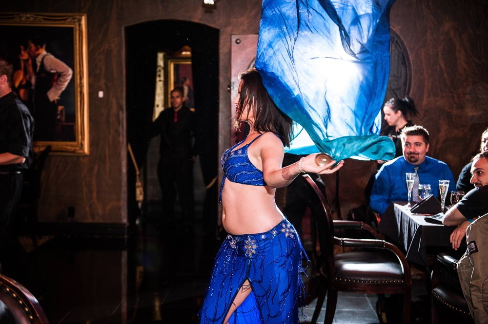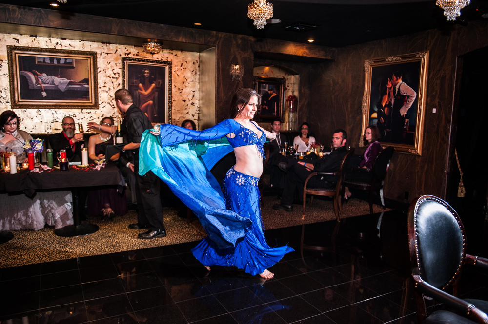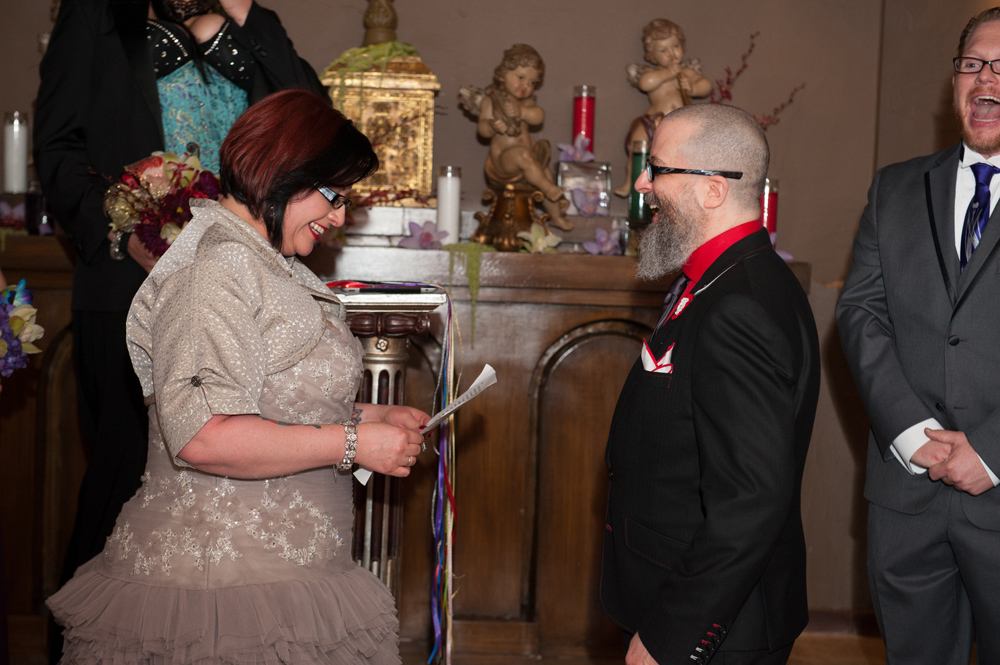 After getting ready at Vdara, they chose the gothy, appropriately art-themed boutique hotel The Artisan for their handfasting, vow renewal and wedding reception. A belly dancer entertained and a custom cake based on Tony Duquette’s designs enthralled. The elaborate cake (from Aracelli Zea Cake Studio) with vibrant colors and artistic shapes was a showstopper!