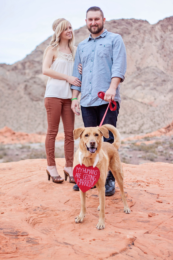 If you are in any way a regular reader of Little Vegas Wedding, you know I am a dog lover. I especially love when a couple incorporates their friend into wedding photos, or engagement photos as Stacey and Bryan have, today.