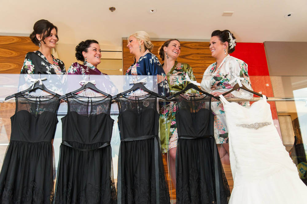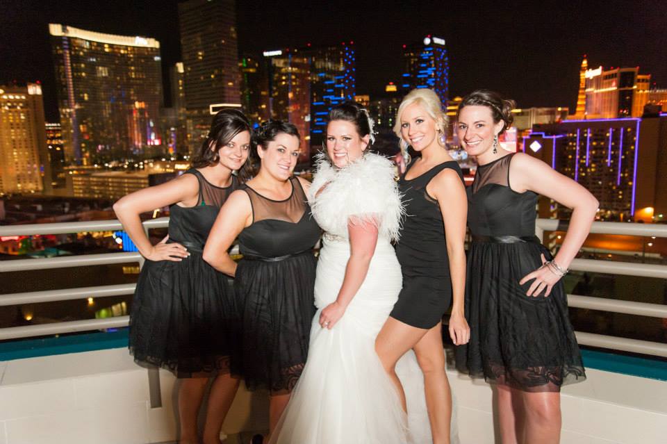 Photographer: Tyler Freear Photography / Ceremony Venue: Aria Wedding Chapel / Reception Venue: MGM Grand Skyline Terrace Suite / Wedding Dress: I Do Bridal, Seattle WA / Alterations: Romashka Bridal, Everett WA / Day of Coordination: Laurie Andersen / Hair: Katie Sarpy of Essential Organic Earth Salon, Tulalip WA / Makeup: Bobby Pin Beauty by Francesca Lombardo / Bride’s Shoes: Aldo with DIY Swarovski detailing / Bridesmaid’s Dresses: Davids’ Bridal / Groom’s Suit + Menswear: Men’s Wearhouse / Floral: Bride’s Cousin from Mayesh Wholesale Floral / Catering: DIY / Cake: Retro Bakery / Cake Topper: Chicago Factory / Stationery: Wedding Paper Divas / Door Hangers: Brown Paper Moon / Rentals (ice chest, chafing dishes): RSVP Party Rentals / Transport: Presidential Limousine / Videographer: Langdon Video