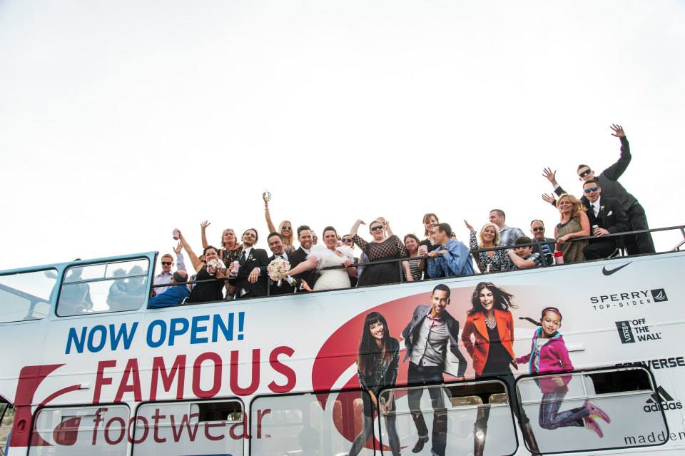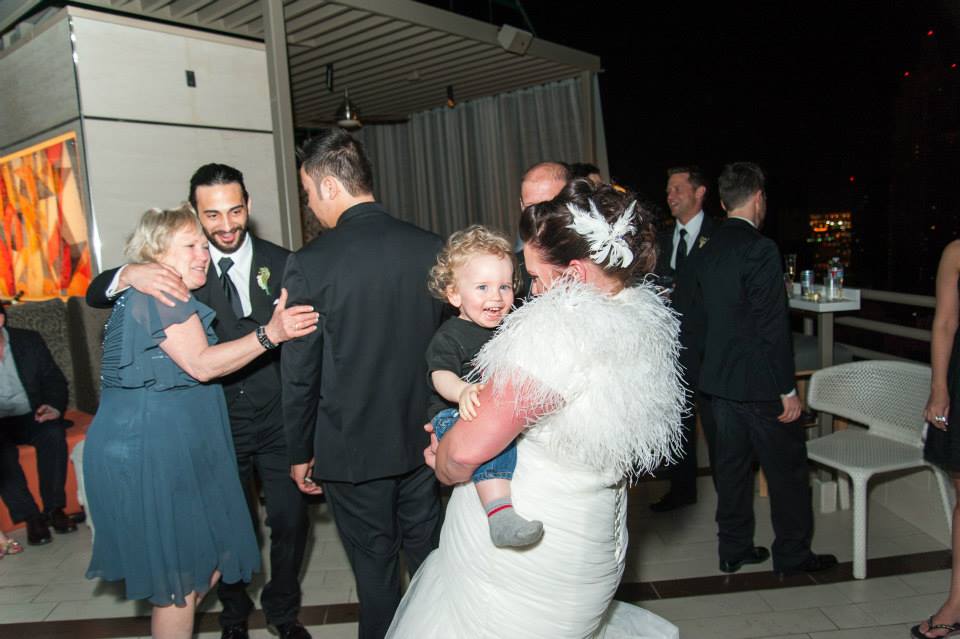 Before we went to MGM we had a short tour of the strip on a double decker bus. Our guests enjoyed themselves but we cut it short and headed to the suite. My aunt and her sister-in-law made all the food for the reception at her condo. We had a selection of hors h’oeuvres including bacon wrapped prawns, caprese skewers, smoked salmon dip, hot artichoke crab dip and more. We brought our own alcohol and hired a bartender through Culinary Pros, to serve up drinks all night long. A friend was our DJ, and we danced the night away with a beautiful view from the terrace!