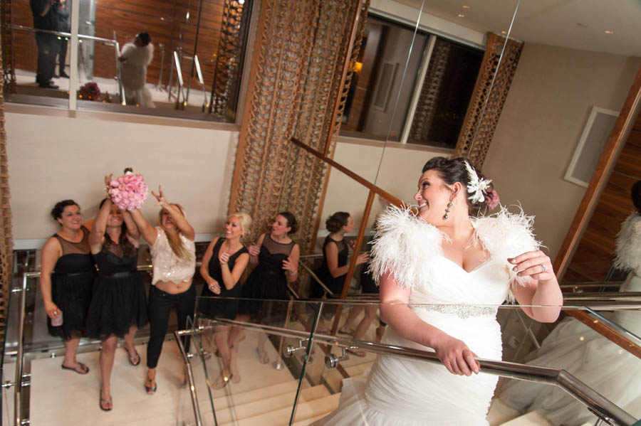 Krista and Austin show us how an in-suite wedding reception is done in Las Vegas in today’s post! After a ceremony at Aria’s wedding chapel (and a double decker bus ride) they brought their guests back to a Skyline Terrace suite at MGM Grand for an evening of dancing, food and cake, enjoyed from the patio with a fantastic panoramic view of the Strip.