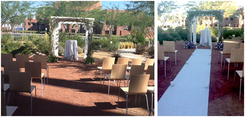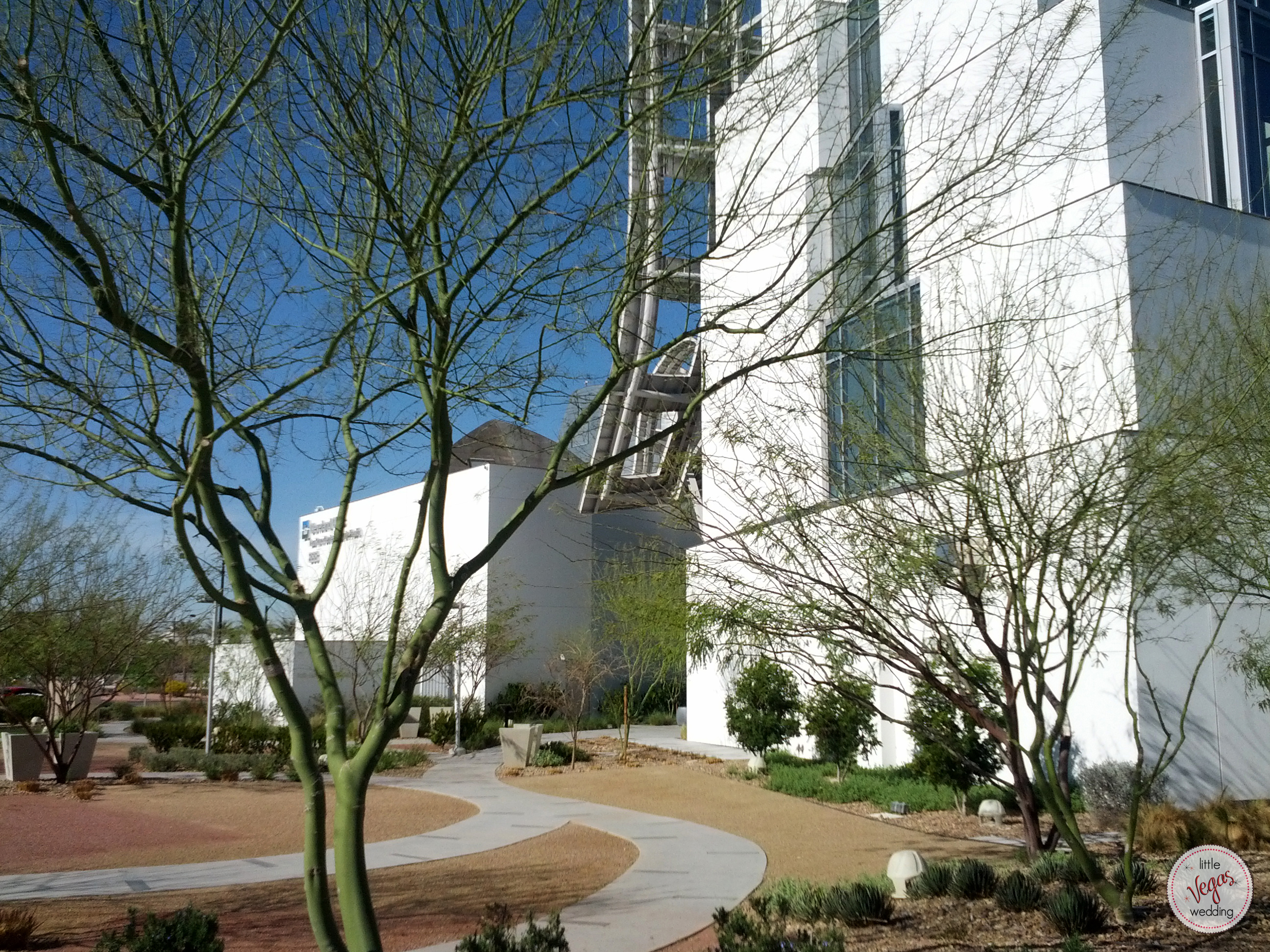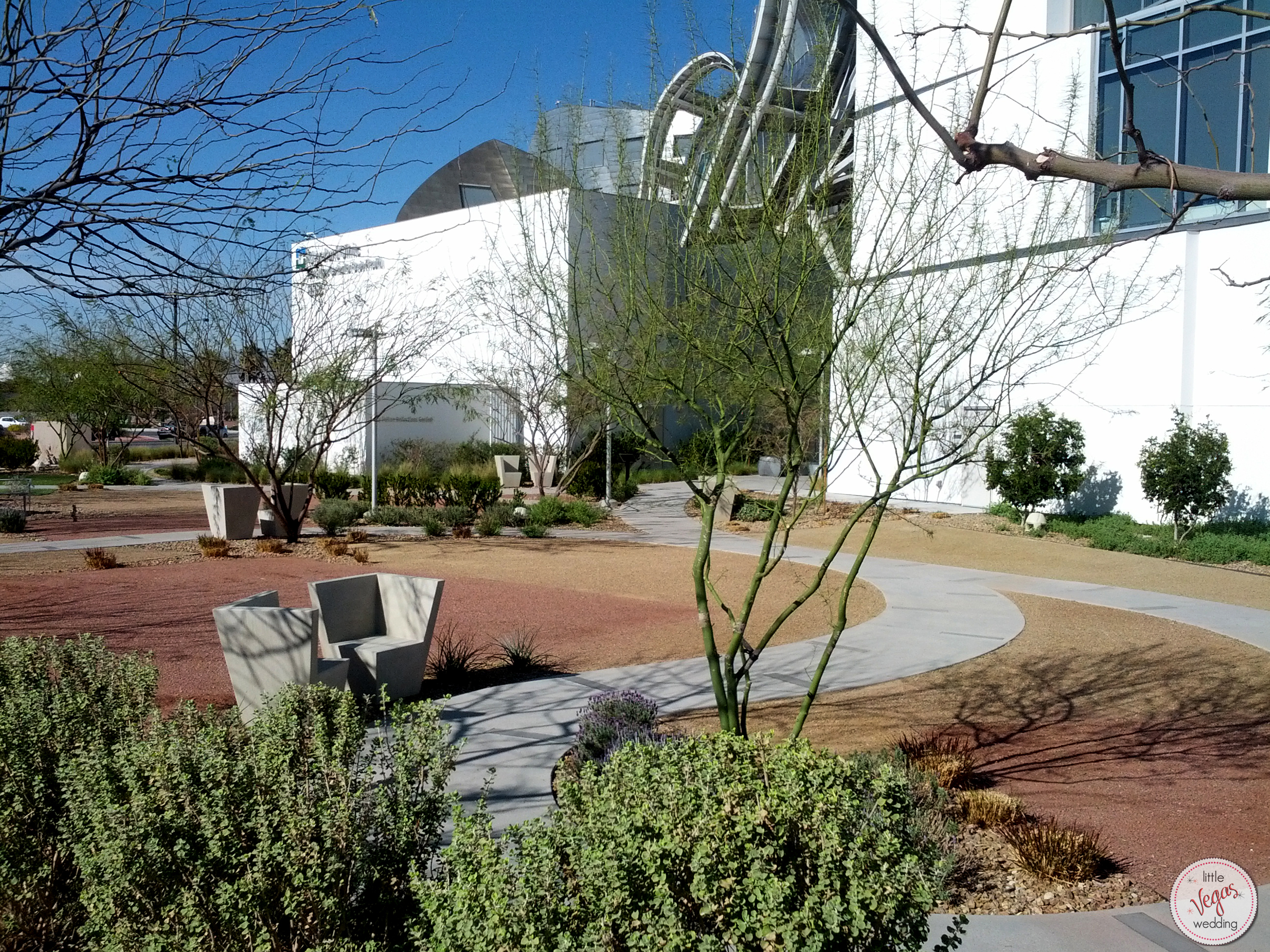 The Keep Memory Alive Center is one of Las Vegas’s most exclusive and sought after wedding venues. It is located in the futuristic Cleveland Clinic building which was designed by famed architect Frank Gehry. Primarily serving as a center for research and treatment of Alzheimer’s, Lou Gehrig’s, Parkinson’s and Huntington’s disease, the event center is attached to the clinic through a breezeway courtyard, but is separate from the clinic and does not feel like a medical facility in the slightest.