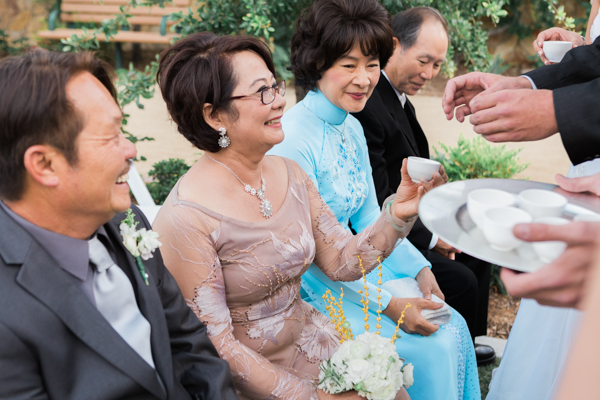 The ceremony was officiated by my sister’s husband who made it very personal and heartfelt. We incorporated the tea ceremony to honor my Vietnamese culture and parents. The purpose of the tea ceremony is for the bride and groom to honor our family elders and receive their blessings. During the ceremony, my father read a Vietnamese poem that he wrote in which it was translated in English and French. My bridesmaid read the English version of the poem and my mother-in-law read the French version. We thought it was a nice way to include our parents and friend into the ceremony.